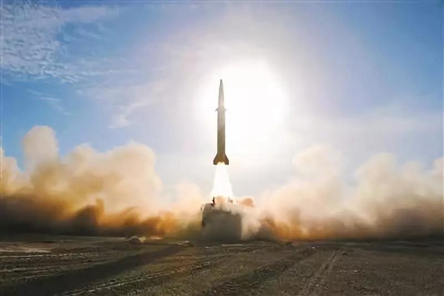 戈壁高原,導(dǎo)彈點(diǎn)火升空。王杰 攝