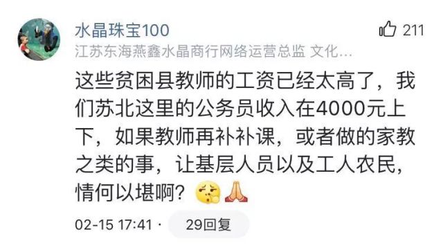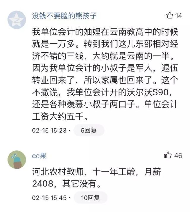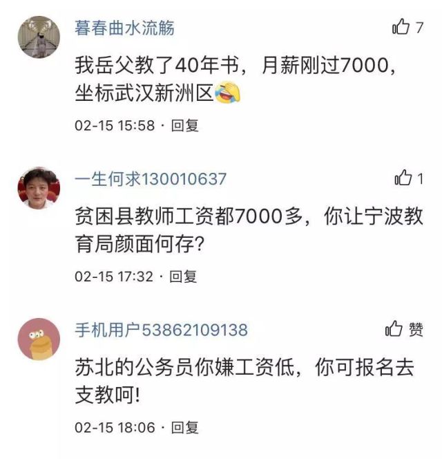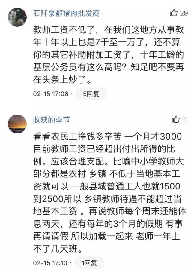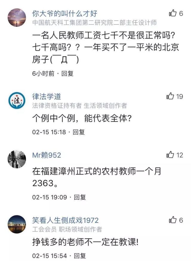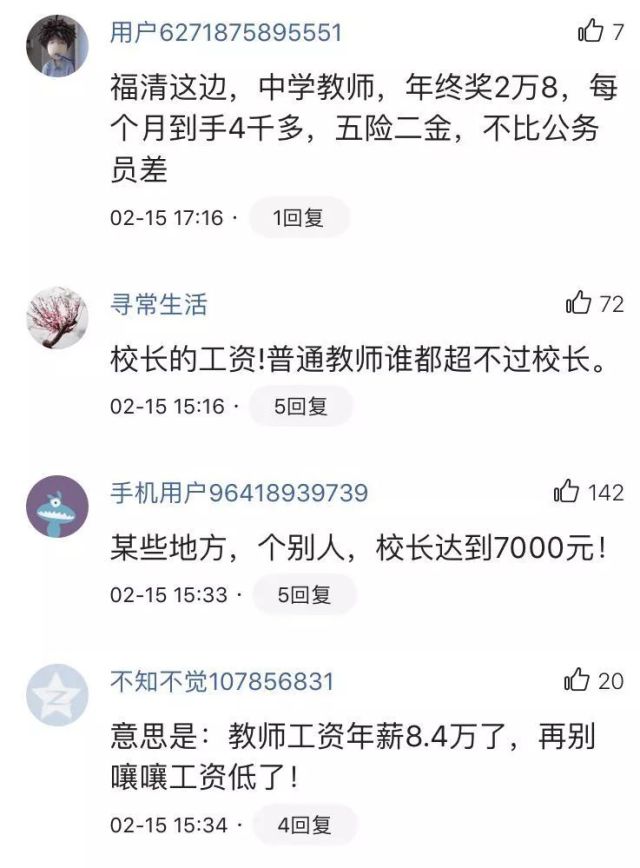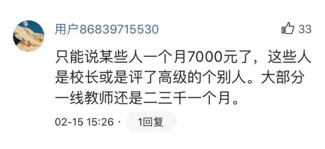 2月15日,經(jīng)濟(jì)日?qǐng)?bào)新聞客戶端推送消息《教育部:某些國家級(jí)少數(shù)民族貧困縣教師月薪已達(dá)7000元》,引起大家的強(qiáng)烈反響。對(duì)于目前大多數(shù)教師的薪資水平、怎么看待教師待遇、怎么評(píng)價(jià)待遇的高低才客觀等問題,眾多網(wǎng)友進(jìn)行了熱烈的討論,有教師還曬出了自己工資單……