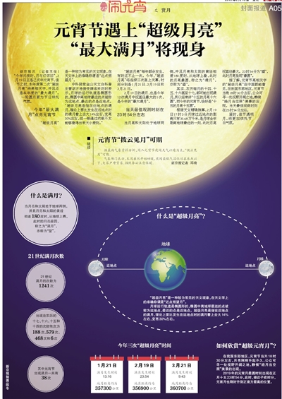 “超級月亮”每年都會發(fā)生,有時還不止一次。今年,“超級月亮”將連續(xù)三次登上天幕,時間分別是1月21日、2月19日和3月21日。
