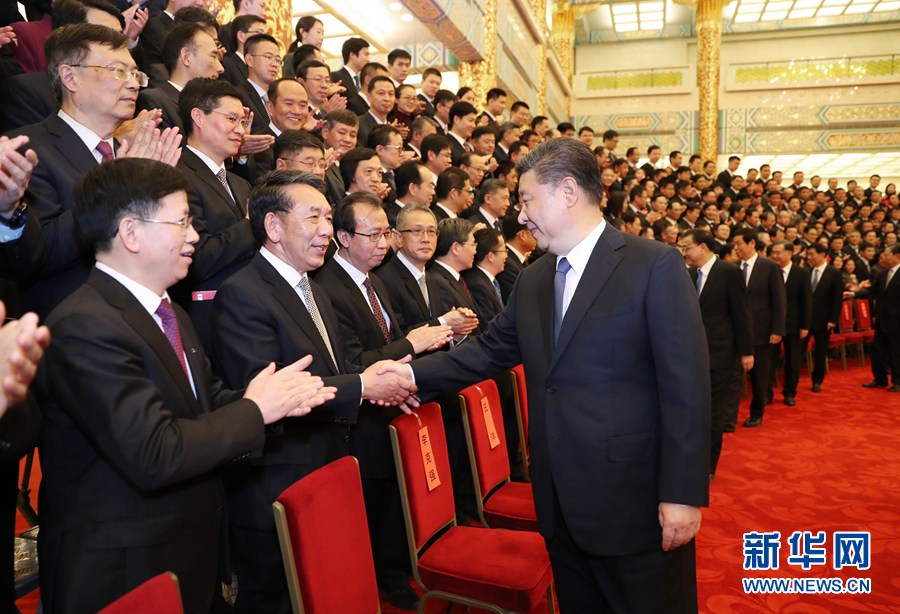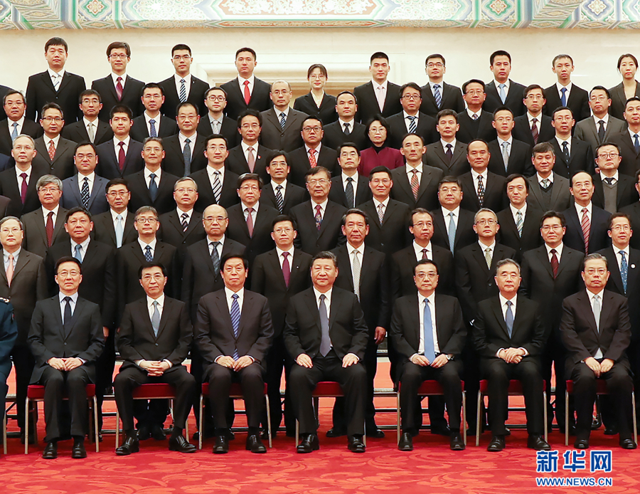 2月20日,黨和國(guó)家領(lǐng)導(dǎo)人習(xí)近平、李克強(qiáng)、栗戰(zhàn)書、汪洋、王滬寧、趙樂際、韓正等在北京人民大會(huì)堂會(huì)見探月工程嫦娥四號(hào)任務(wù)參研參試人員代表。 新華社記者鞠鵬攝