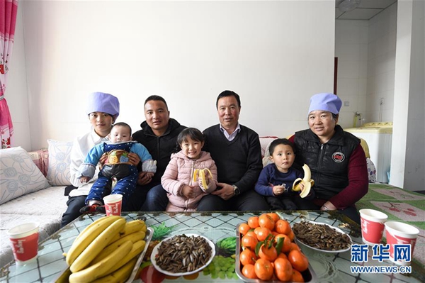 馬國權(quán)和家人在潤豐村的新家中合影(2月18日攝)。新華社發(fā)(馮開華 攝)