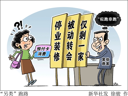 預(yù)付卡商家跑路消失,消費(fèi)者遭遇維權(quán)難已不是新鮮事。然而記者調(diào)查發(fā)現(xiàn),為了躲避判罰,拖延賠付時(shí)間,不少預(yù)付卡商家開始上演“另類”跑路——“停業(yè)裝修”“被動(dòng)轉(zhuǎn)會(huì)”“僅剩一家”等戲碼輪番上演,制造出一種“似跑非跑”的現(xiàn)象,讓消費(fèi)者陷入維權(quán)困境。