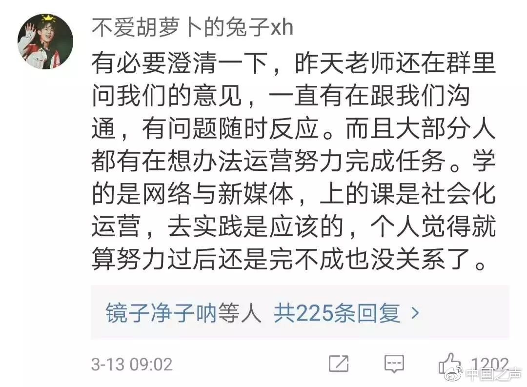 也有學(xué)生認(rèn)為,比起課本上知識,在校學(xué)習(xí)也應(yīng)注重實踐,有時候一些課程或課間作業(yè)看似無厘頭,背后也有老師們的良苦用心。不少走上工作崗位的同學(xué),在一段時間之后才體會到當(dāng)年自己曾吐槽的那門課程所教會自己的東西:“大部分同學(xué)有在想辦法完成這樣一個運營任務(wù),學(xué)的是網(wǎng)絡(luò)與新媒體,我覺得去實踐是應(yīng)該的,自己覺得就算努力過后完不完成任務(wù)也沒所謂,你去實踐了很重要?!?/p>