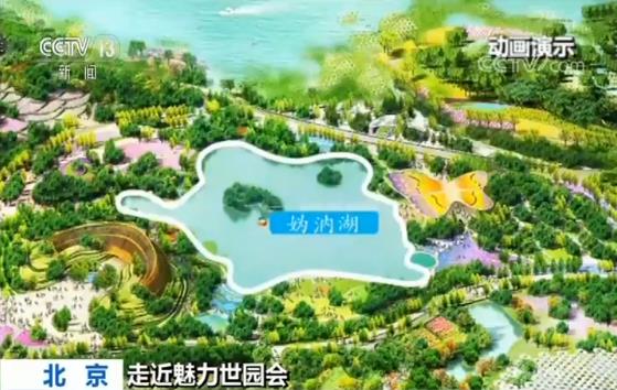 央視記者羅子瑛說(shuō),幾年前媯水河的南岸還是一片田野,2014年5月當(dāng)園區(qū)的規(guī)劃者走到媯水河的拐彎處,這個(gè)位置,往北他們看到了媯水河最為寬闊的水面,而水面之上就是著名的冠帽山,往西北方向看則是小海坨山,山川形勝,圖畫(huà)天然。從這個(gè)被規(guī)劃者稱(chēng)為“自然感動(dòng)點(diǎn)”的位置出發(fā),引山水入園,沿著兩條延長(zhǎng)線(xiàn)進(jìn)行規(guī)劃,形成了現(xiàn)在園區(qū)的兩條軸線(xiàn),山水園藝軸和世界園藝軸。