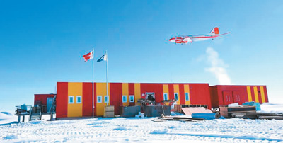 雪鷹601飛機飛過中國南極昆侖站。新華社發(fā)(資料圖片)