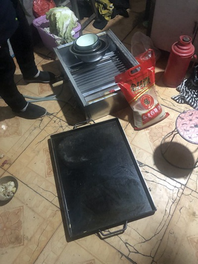 以前和雇用的司機(jī)一起跑活兒,吃飯就圖省事。堵車了他們用冷水直接泡方便面吃。妻子跟車后,王紅保不想讓她跟著吃苦,就把家里的鍋碗瓢盆、液化氣爐灶、篦子、高壓鍋全部搬上車,再帶一大堆易于保存的食物,比如臘肉、煎餅。堵車或是卸貨等貨時(shí),他就開始做飯,土豆排骨、蒜苔臘肉、燉魚燉排骨、餃子,什么都做。妻子跟車兩三年,胖了二三十斤。