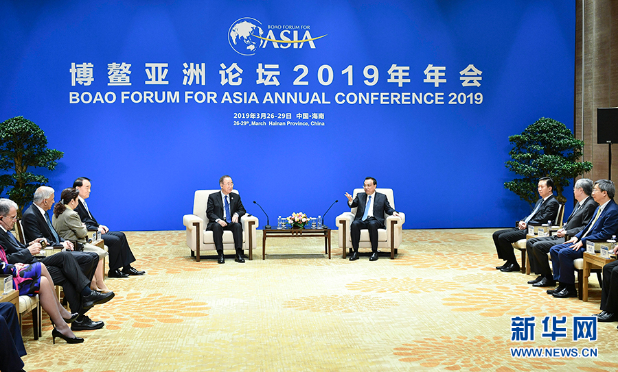 3月27日,國務院總理李克強在海南博鰲會見博鰲亞洲論壇理事長潘基文和理事會部分成員。 新華社記者 殷博古 攝