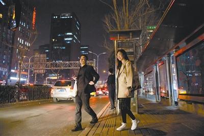 3月26日晚上9時,加完班的任宇佳等公交車回家。
