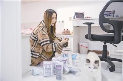 3月27日晚,曾琪回到家中將前幾天在國外購買的化妝品打包寄給自己的粉絲,海外代購是她的另一項副業(yè)。