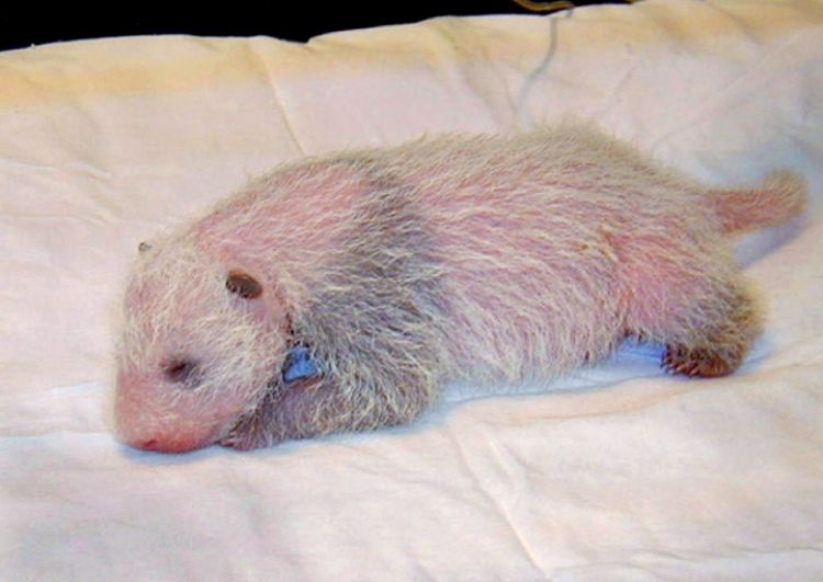 這是2001年12月26日拍攝的剛剛出生幾天的大熊貓“雄浜”的照片。(新華社發(fā))