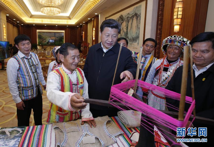 2015年1月20日,習(xí)近平向獨(dú)龍族群眾代表詢問(wèn)民族特有生產(chǎn)工具使用情況