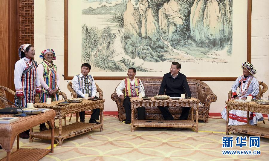 2015年1月20日,習(xí)近平在昆明親切會(huì)見(jiàn)怒江州貢山獨(dú)龍族怒族自治縣干部群眾代表