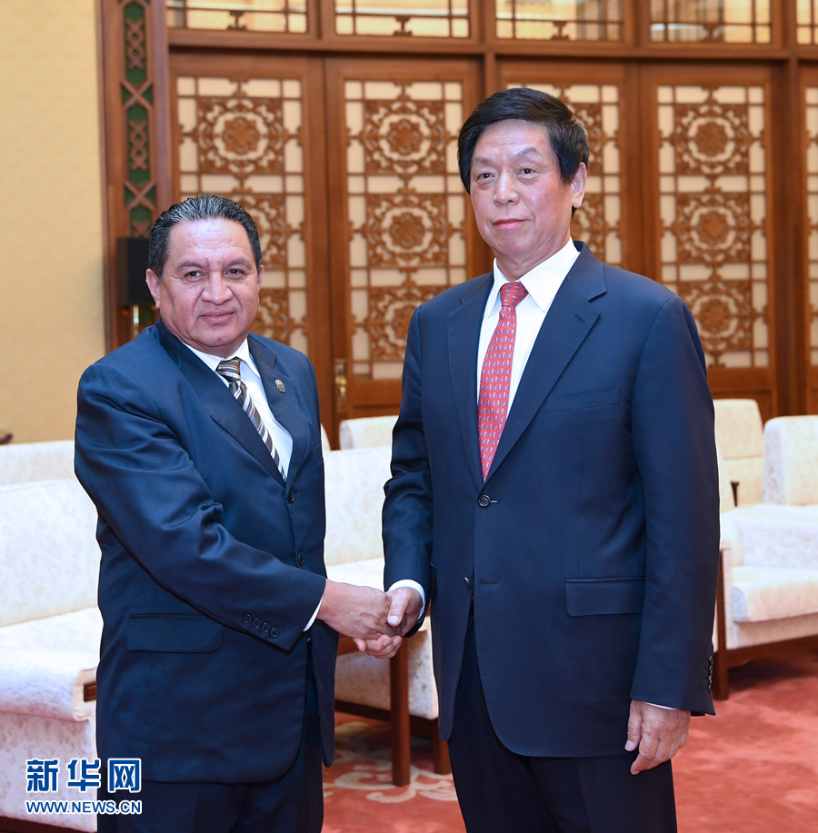 4月15日,全國人大常委會委員長栗戰(zhàn)書在北京人民大會堂會見薩爾瓦多國民議會第一副議長奧蘭特斯。 新華社記者 饒愛民 攝
