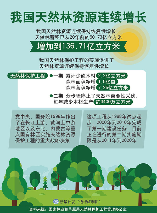 圖表:我國(guó)天然林資源連續(xù)增長(zhǎng) 新華社發(fā) 邊紀(jì)紅 制圖