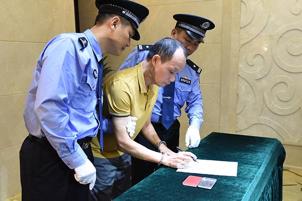 公安機關向“紅通人員”梁澤寧宣布逮捕決定(深圳市紀委監(jiān)委 倪勛 攝)