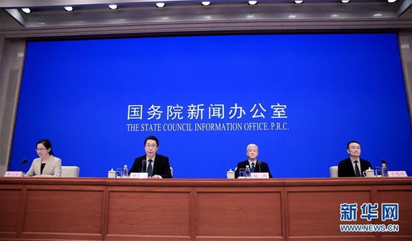 4月28日,國務(wù)院新聞辦公室在北京舉行新聞發(fā)布會(huì),請國家知識(shí)產(chǎn)權(quán)局局長申長雨、國家知識(shí)產(chǎn)權(quán)局副局長趙剛、中宣部版權(quán)管理局局長于慈珂介紹2018年中國知識(shí)產(chǎn)權(quán)發(fā)展?fàn)顩r,并答記者問。新華社記者 潘旭 攝