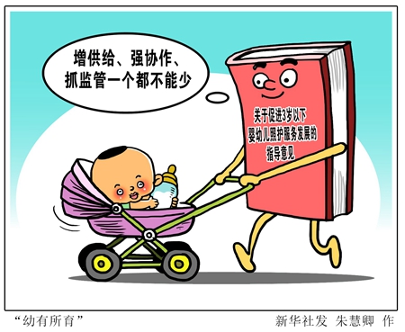 嬰幼兒的照護(hù)服務(wù)是保障和改善民生的重要內(nèi)容,事關(guān)嬰幼兒健康成長(zhǎng),事關(guān)千家萬(wàn)戶(hù)。黨的十九大報(bào)告把“幼有所育”作為保障和改善民生的重要內(nèi)容。近日,國(guó)務(wù)院辦公廳印發(fā)了《關(guān)于促進(jìn)3歲以下嬰幼兒照護(hù)服務(wù)發(fā)展的指導(dǎo)意見(jiàn)》。