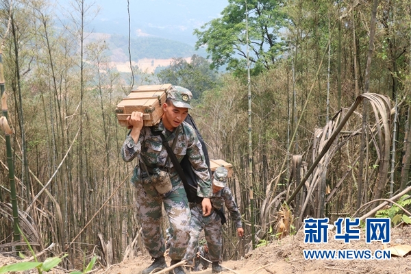 在云南麻栗坡,杜富國向雷場外轉(zhuǎn)運炸藥(2015年4月26日攝)。?新華社發(fā)(黃巧 攝)