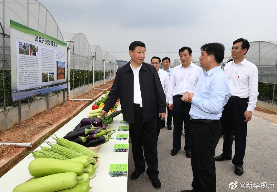 20日下午,習(xí)近平總書記來到江西省于都縣梓山富硒蔬菜產(chǎn)業(yè)園考察調(diào)研。產(chǎn)業(yè)園以“龍頭企業(yè)+合作社+農(nóng)戶和貧困戶”發(fā)展模式,帶動(dòng)了當(dāng)?shù)卮迕衩撠氈赂?。看到總書記來了,正在大棚里勞作的鄉(xiāng)親們激動(dòng)地說:“感謝黨的好政策,讓我們過上了幸福生活!”習(xí)近平對(duì)鄉(xiāng)親們說:“共產(chǎn)黨就是為人民群眾謀幸福的,黨中央想的就是千方百計(jì)讓老百姓過上好日子。芝麻開花節(jié)節(jié)高,今后日子會(huì)更好!”(文字:張曉松 攝影:謝環(huán)馳、鞠鵬)