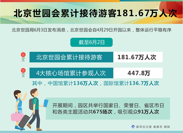 新華社北京6月3日電(記者魏夢(mèng)佳、丁靜)北京世園局3日發(fā)布消息,北京世園會(huì)自4月29日開園以來,整體運(yùn)行平穩(wěn)有序。截至6月2日,北京世園會(huì)累計(jì)接待游客181.67萬人次,4大核心場(chǎng)館累計(jì)參觀人次達(dá)447.8萬。