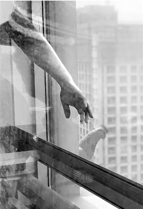 記者觀察了一下,玻璃幕墻外的橫梁其實(shí)并不寬,大約20厘米,最窄處只有10厘米。物業(yè)很擔(dān)心,“這么高的地方,無論是對(duì)業(yè)主,還是對(duì)這只雞來說,都不安全?!碑?dāng)時(shí),他們就考慮怎么把雞給救下來。
