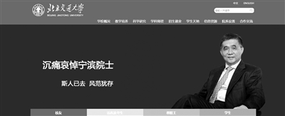 為悼念寧濱,北京交通大學的官網已變成黑色,并發(fā)出訃告,其追悼會將于6月18日上午10時,在北京八寶山殯儀館東禮堂舉行。