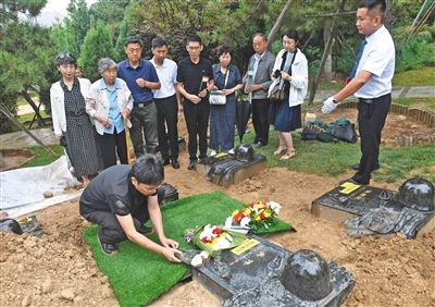 昨日早晨8點(diǎn),在親屬陪伴下,第250份烈士骨灰由八寶山革命公墓烈士骨灰堂遷葬至公墓新建的烈士紀(jì)念園。按計劃,革命公墓烈士骨灰堂現(xiàn)存的680份骨灰將于本月底前完成遷葬。