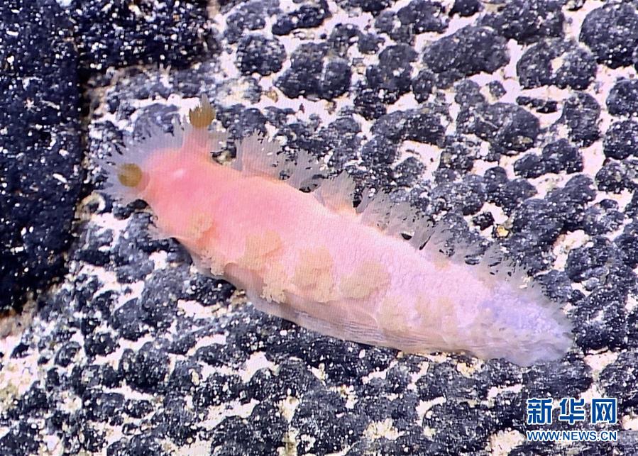 “發(fā)現(xiàn)”號(hào)遙控?zé)o人潛水器在海山拍攝到的海兔(5月27日攝)。新華社發(fā)