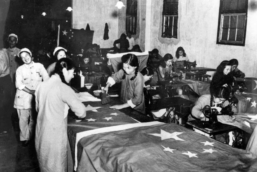 這就是開國大典《義勇軍進行曲》第一次作為國歌演奏的歷史性畫面。