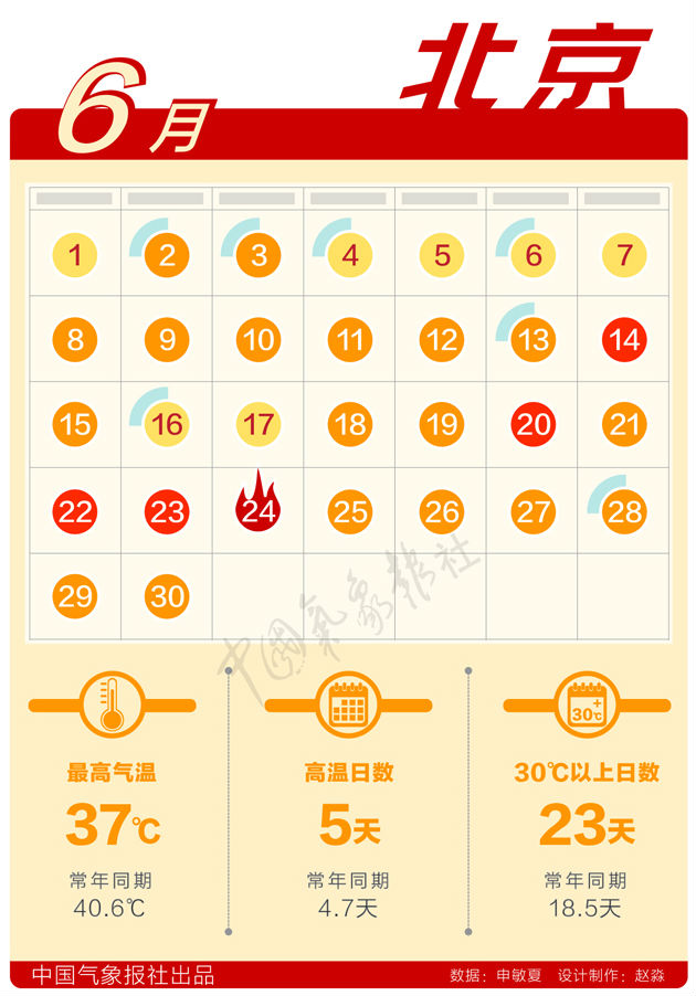 哪座城市6月高溫持續(xù)時間長?哪些地區(qū)6月降雨頻繁?本期“聊天兒”選取6個城市,用今年6月的情況對比常年同期數(shù)據(jù),制作了首份天氣日歷!快來看看,你家那兒破極值了么?