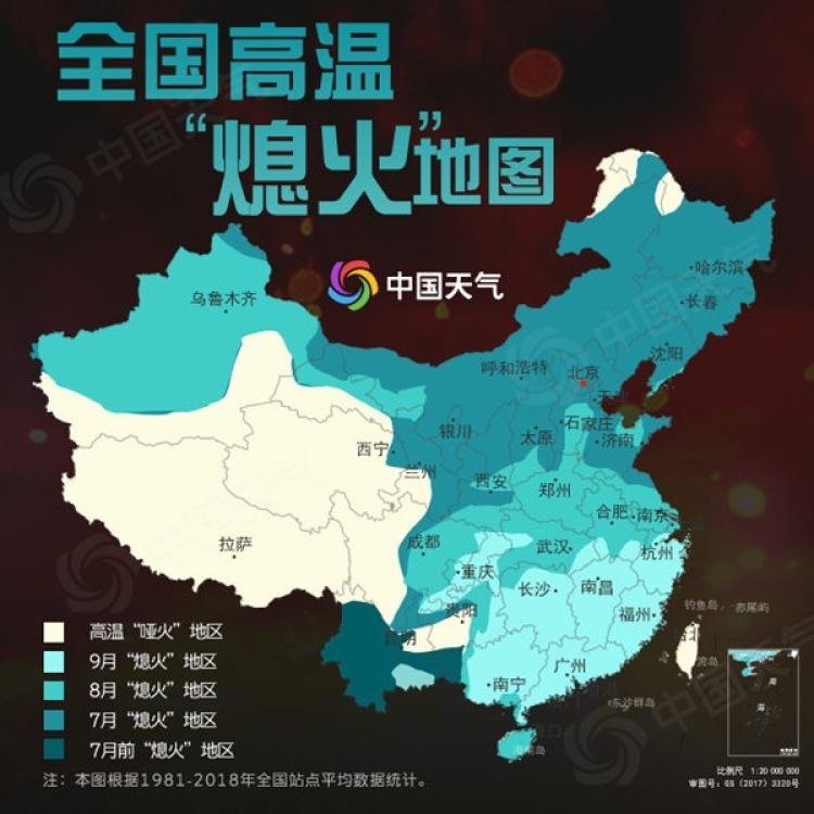 中國天氣網(wǎng)統(tǒng)計(jì)了近38年來全國各地一年中高溫最集中時(shí)段,從高溫“點(diǎn)火日”、“熄火日”以及“點(diǎn)火”與“熄火”期間的火爐“燃燒日”三個(gè)角度,幫助大家掐準(zhǔn)高溫“火爐”的火候。趁南方高溫尚未進(jìn)入鼎盛,一起來看看大家離真正的高溫“旺火”還有多遠(yuǎn)?