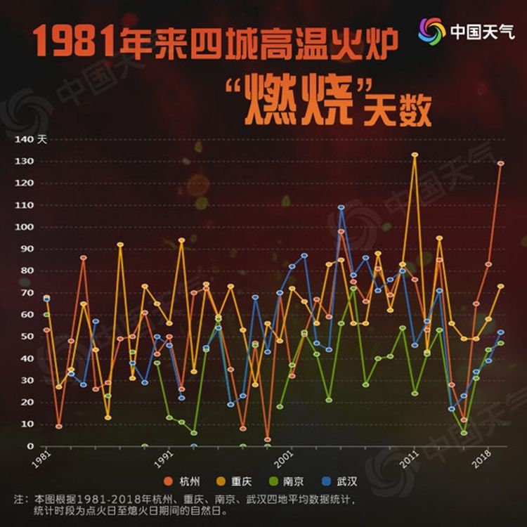 從1981年至2018年的平均數(shù)據(jù)統(tǒng)計(jì)來看,北方火爐“點(diǎn)”得早“熄”得也早,相比之下,江南華南火爐耐力更足,“燃燒”時(shí)間更長,往往9月才最后“熄火”。