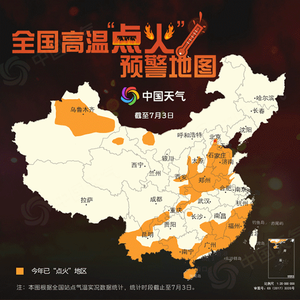 小暑將至,入伏在即,今夏高溫競賽即將白熱化!北方憑多輪燒烤式高溫?fù)屨枷葯C(jī),南方雖因雨水頻繁稍有落后,但也將在接下來的三伏期間蓄力一搏。遭遇高溫蒸烤,我們只能認(rèn)慫保命?中國天氣網(wǎng)獨(dú)家推出全國高溫“點(diǎn)火”預(yù)警地圖,告訴你高溫火爐一般何時(shí)“點(diǎn)著”、何時(shí)“熄滅”,讓你做“火爐”里最美味的仔。