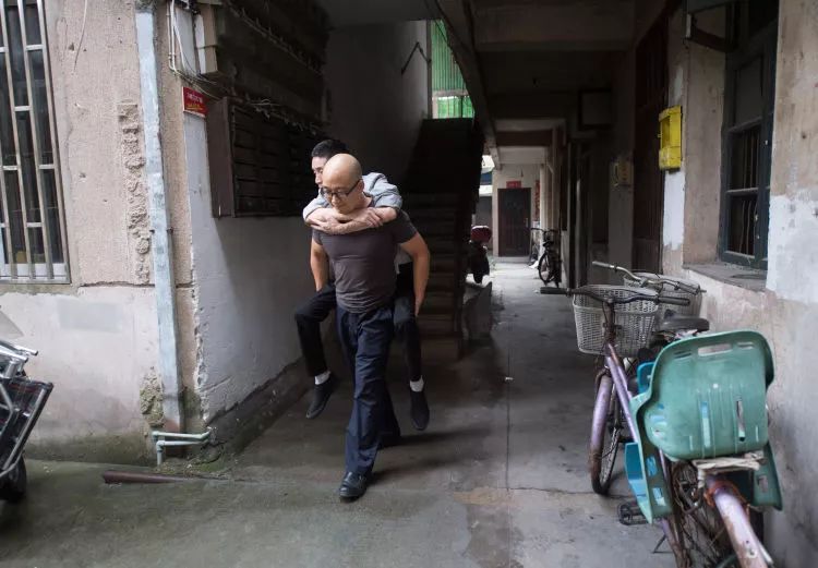 張海林背著吳元渺去參加愛心服務(wù)隊(duì)的公益活動(dòng)。
