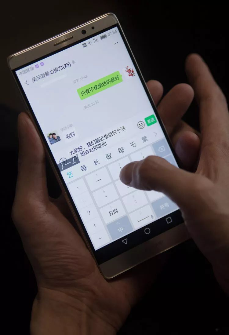 吳元渺在家中給愛心服務(wù)隊(duì)的志愿者們發(fā)信息,組織一場(chǎng)新的公益活動(dòng)。
