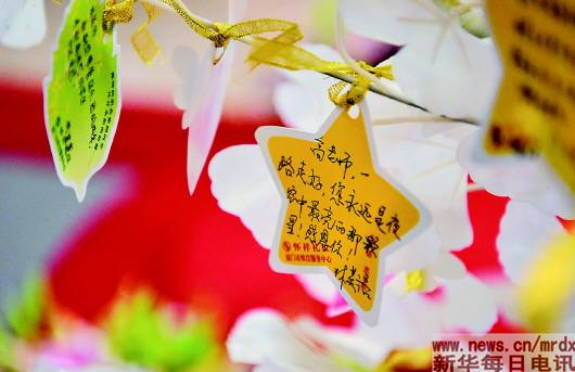 7月21日,廈門(mén)六中音樂(lè)老師高至凡曾教過(guò)的廈門(mén)六中合唱團(tuán)學(xué)生追念老師的留言。新華社記者魏培全攝
