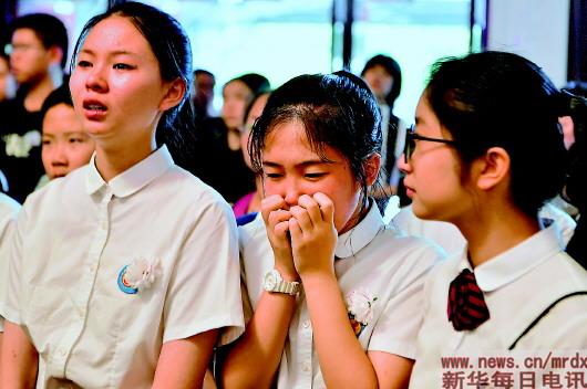 7月21日,在廈門(mén)六中音樂(lè)老師高至凡的追思會(huì)現(xiàn)場(chǎng),合唱團(tuán)學(xué)生含淚送別自己的老師。新華社記者魏培全攝