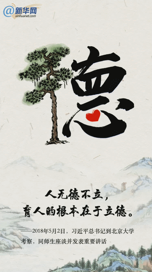 2018年5月2日,習(xí)近平總書記到北京大學(xué)考察,同師生座談并發(fā)表重要講話。他強(qiáng)調(diào),人無德不立,育人的根本在于立德。這是人才培養(yǎng)的辯證法。辦學(xué)就要尊重這個規(guī)律,否則就辦不好學(xué)。?