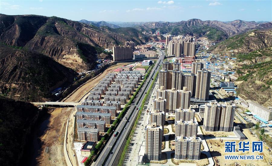 陜西延安安塞區(qū)的惠澤園移民搬遷安置小區(qū)(4月23日無人機(jī)拍攝)。新華社記者 劉瀟 攝