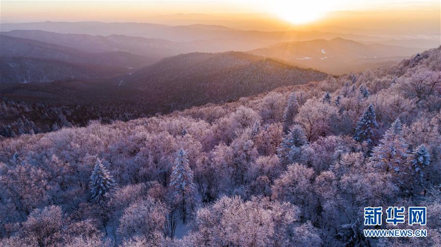這是在長白山林區(qū)拍攝的霧凇景色(2018年1月13日無人機(jī)拍攝)。新華社記者 許暢 攝