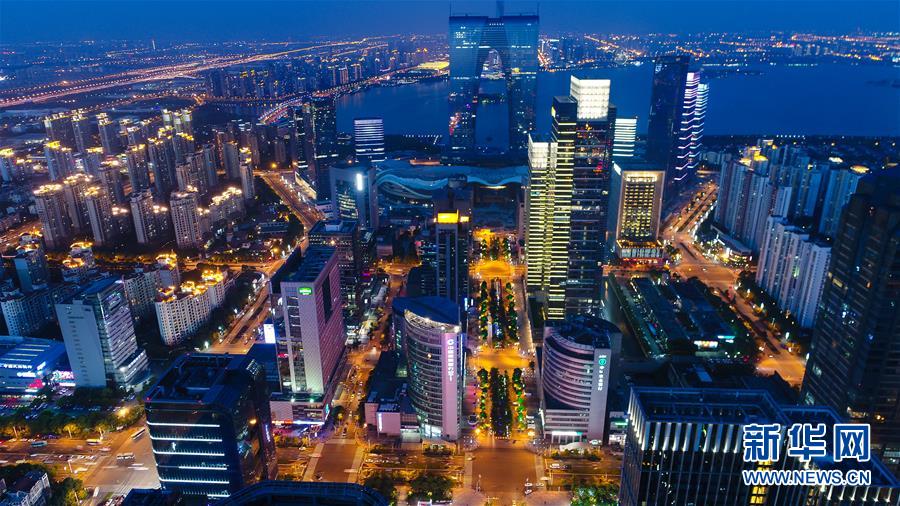 蘇州工業(yè)園區(qū)夜景(2017年5月9日無人機(jī)拍攝)。新華社記者 李響 攝
