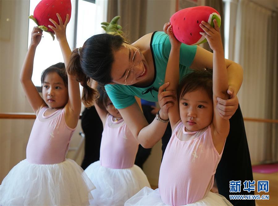 在宿遷市洋河新區(qū)新城名苑社區(qū)活動中心,小朋友們在老師的指導(dǎo)下練習(xí)舞蹈動作(7月15日攝)。新華社記者 季春鵬 攝
