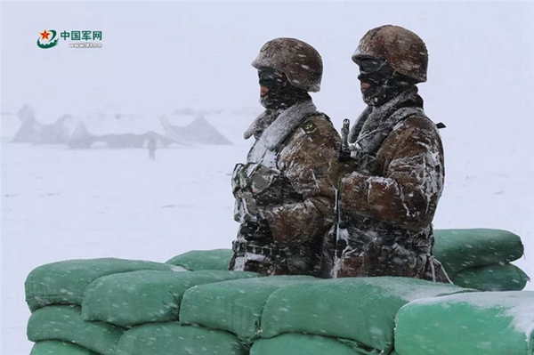 2017年12月6日,西藏軍區(qū)某部官兵在風(fēng)雪中仍然堅守在海拔4700米的邊防哨。