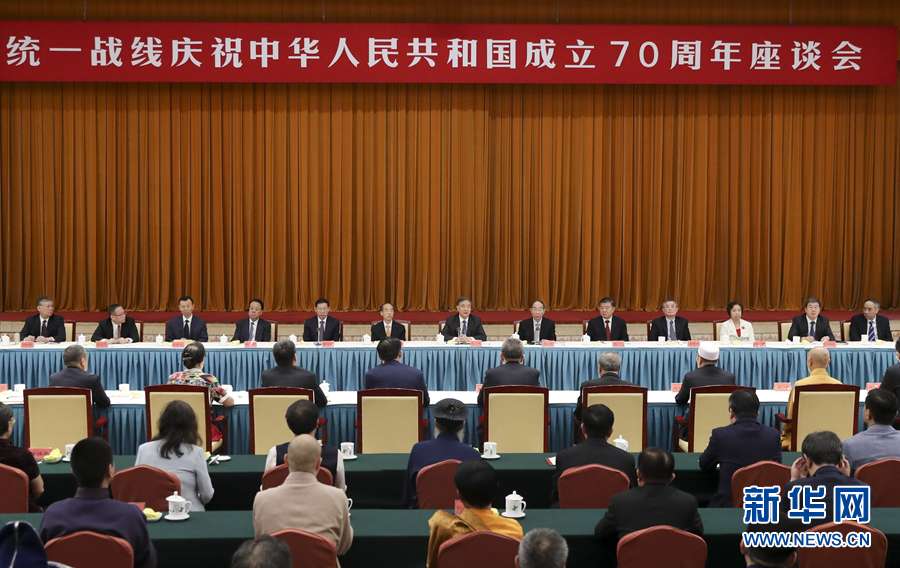 新華社北京9月11日電(記者王琦)統(tǒng)一戰(zhàn)線慶祝中華人民共和國成立70周年座談會11日在京召開。中共中央政治局常委、全國政協(xié)主席汪洋出席會議并講話。他強調,統(tǒng)一戰(zhàn)線是中國共產(chǎn)黨領導的廣泛政治聯(lián)盟,具有鮮明的中國特色,過去是、現(xiàn)在是、今后仍然是黨的事業(yè)取得勝利的重要法寶。要以習近平新時代中國特色社會主義思想為指導,深入學習貫徹習近平總書記關于加強和改進統(tǒng)一戰(zhàn)線工作的重要思想,切實把中共中央對統(tǒng)一戰(zhàn)線的決策部署落實下去、把廣大統(tǒng)一戰(zhàn)線成員的智慧力量凝聚起來,為實現(xiàn)中華民族偉大復興的中國夢共同奮斗。