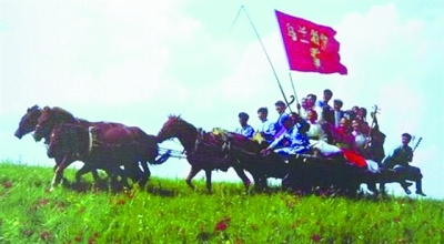 烏蘭牧騎,“紅色嫩芽”之意。1957年6月17日,內蒙古第一支烏蘭牧騎——蘇尼特右旗烏蘭牧騎在溫都爾廟成立。第二天,舉著紅旗、甩著響鞭,9位隊員乘著馬車,向偏遠的牧區(qū)出發(fā)了。兩塊幕布、三盞煤氣燈、五件樂器,一專多能的9個人從此開創(chuàng)了一個時代,培育了一種精神——迎風雪、冒寒暑,不畏艱苦長期在戈壁、草原上為群眾演出服務;有露珠、接地氣、留下的是社會主義文藝作品。烏蘭牧騎優(yōu)良的工作作風、頑強的意志品質和無私的奉獻精神,成為我國文藝戰(zhàn)線的一面旗幟。