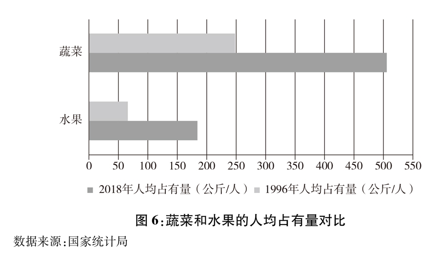 圖6:蔬菜和水果的人均占有量對比 新華社發(fā)