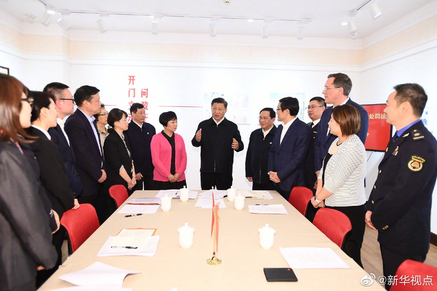 習近平總書記2日在上海市考察調(diào)研。當天下午,他來到楊浦區(qū)濱江公共空間楊樹浦水廠濱江段、長寧區(qū)虹橋街道古北市民中心實地考察,了解城市公共空間規(guī)劃建設(shè)和社區(qū)治理與服務(wù)情況,并同當?shù)鼐用裼H切交談。(文字記者:張曉松 攝影記者:鞠鵬、謝環(huán)馳) ????