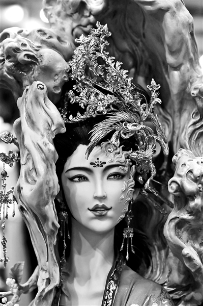 在另一款《梁?;返牡案庵?,周毅團(tuán)隊(duì)將祝英臺(tái)關(guān)在了一個(gè)籠子里,帶有蝴蝶翅膀的梁山伯在籠子外試圖救出祝英臺(tái),卻夠不到心愛(ài)的人?!拔覀?cè)噲D通過(guò)這種造型,展現(xiàn)出梁山伯和祝英臺(tái)陰陽(yáng)兩隔的狀態(tài),我們?cè)诮o外國(guó)人介紹的時(shí)候,也會(huì)引用羅密歐與朱麗葉的故事?!敝芤阏f(shuō)。
