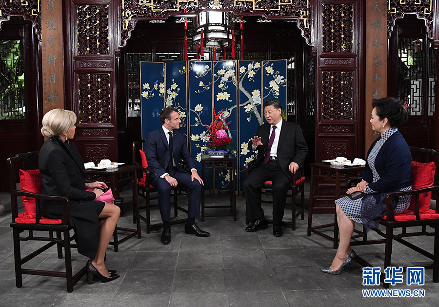 兩國元首夫婦在玉華堂落座。習(xí)近平和彭麗媛愉快地憶及今年3月訪問法國受到馬克龍夫婦熱情款待的情景。習(xí)近平說,歡迎馬克龍總統(tǒng)再次訪華并第一次來上海。上海是中國改革開放和發(fā)展進(jìn)步的縮影,體現(xiàn)了近代以來中國同世界關(guān)系的演變。希望這次訪問有助于你了解上海、了解中國。我和夫人選擇在豫園款待總統(tǒng)先生和夫人,希望你們能領(lǐng)略中華園林之美和中國的傳統(tǒng)文化。文化藝術(shù)表現(xiàn)形式不同,但帶給不同國家民眾的心靈體驗是相通的,不同文化可以和諧共生。中法作為東西方兩大文明代表,應(yīng)該相互尊重,交流互鑒,各美其美,美美與共。