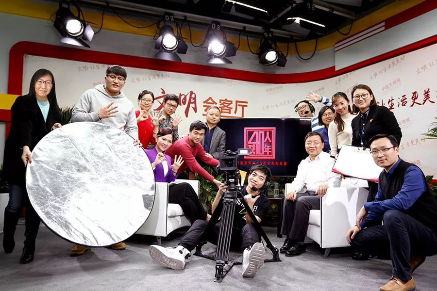 《40人對(duì)話40年》第40期節(jié)目殺青時(shí)部分工作人員合影。
